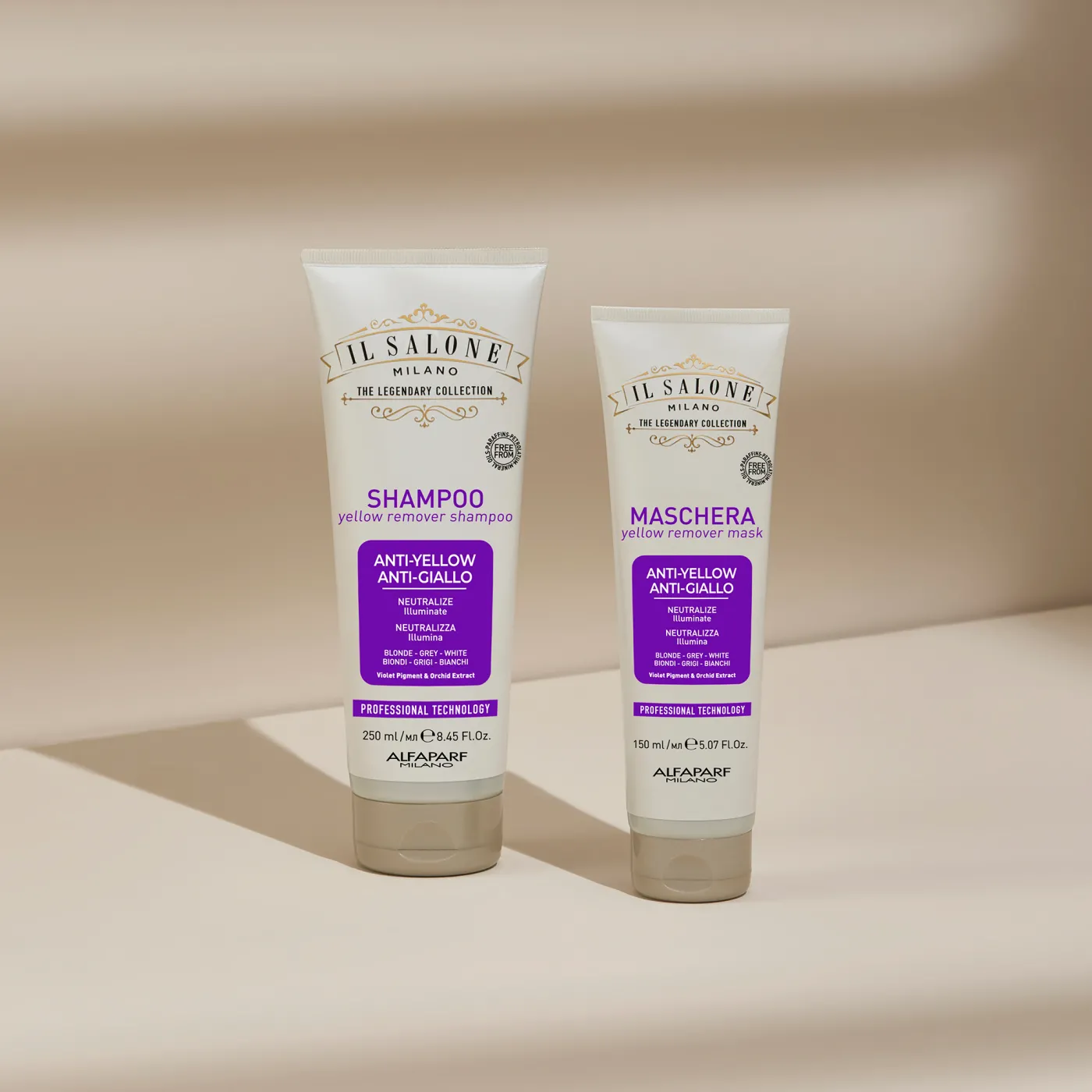 Die professionelle Anti-Gelbstich-Produktlinie Yellow Remover neutralisiert Gelbtöne sofort und verstärkt den natürlichen Farbglanz. Eine Behandlung mit hoher Pflegewirkung, die das Haar tiefenwirksam mit Nährstoffen versorgt, es geschmeidig macht und sichtbar gesund aussehen lässt.