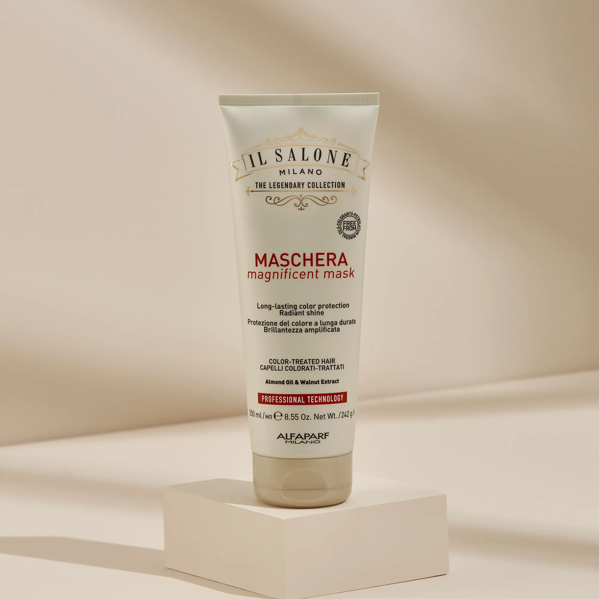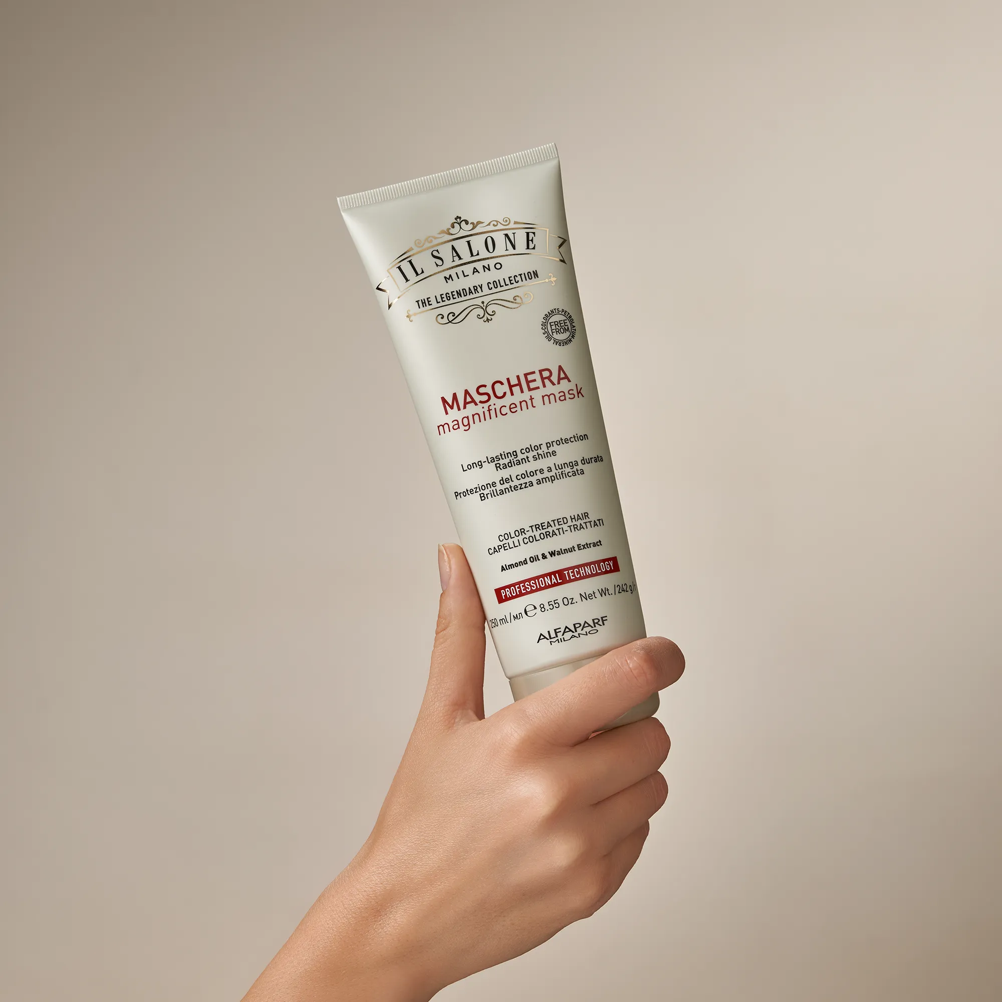 اكتشف Magnificent خط إنتاج: زيت اللوز ومستخلص الجوز، يُعنى بالشعر المصبوغ ويمنحه كثافة فائقة. تركيبات نباتية. free from البارافينات والفازلين والزيوت المعدنية والألوان.