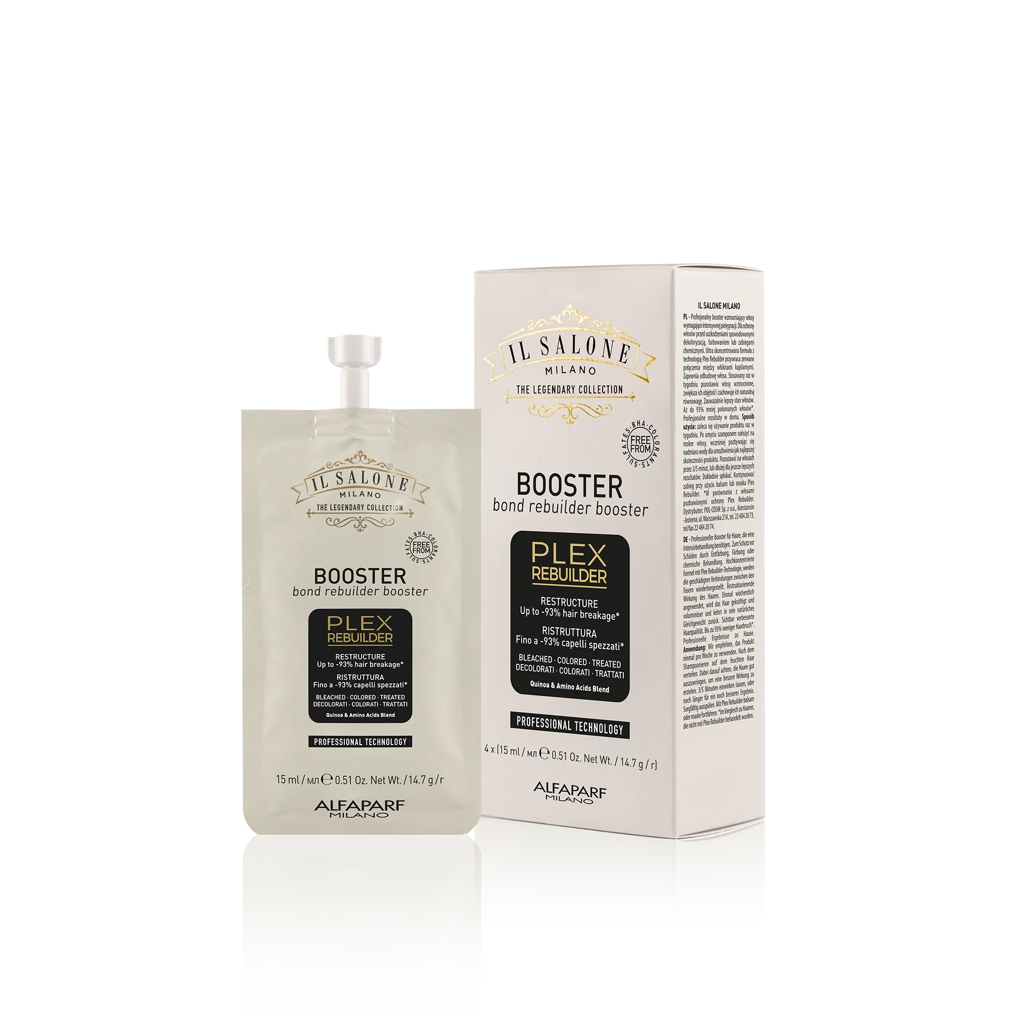 مُعزِّز احترافي للشعر الذي يحتاج إلى عناية فائقة. يحمي الشعر من التلف الناتج عن التبييض أو الصبغة أو العلاجات الكيميائية. تركيبة فائقة التركيز مع Plex Rebuilder تقنية تُعيد بناء الروابط التالفة بين ألياف الشعر. تُعيد بناء الشعر. يُستعمل مرة واحدة أسبوعيًا، فيُنعش الشعر ويُعطيه كثافة، مع استعادة توازنه الطبيعي. يُحسّن حالة الشعر بشكل ملحوظ. يُقلل التكسر بنسبة تصل إلى 93%*. نتائج احترافية في المنزل.