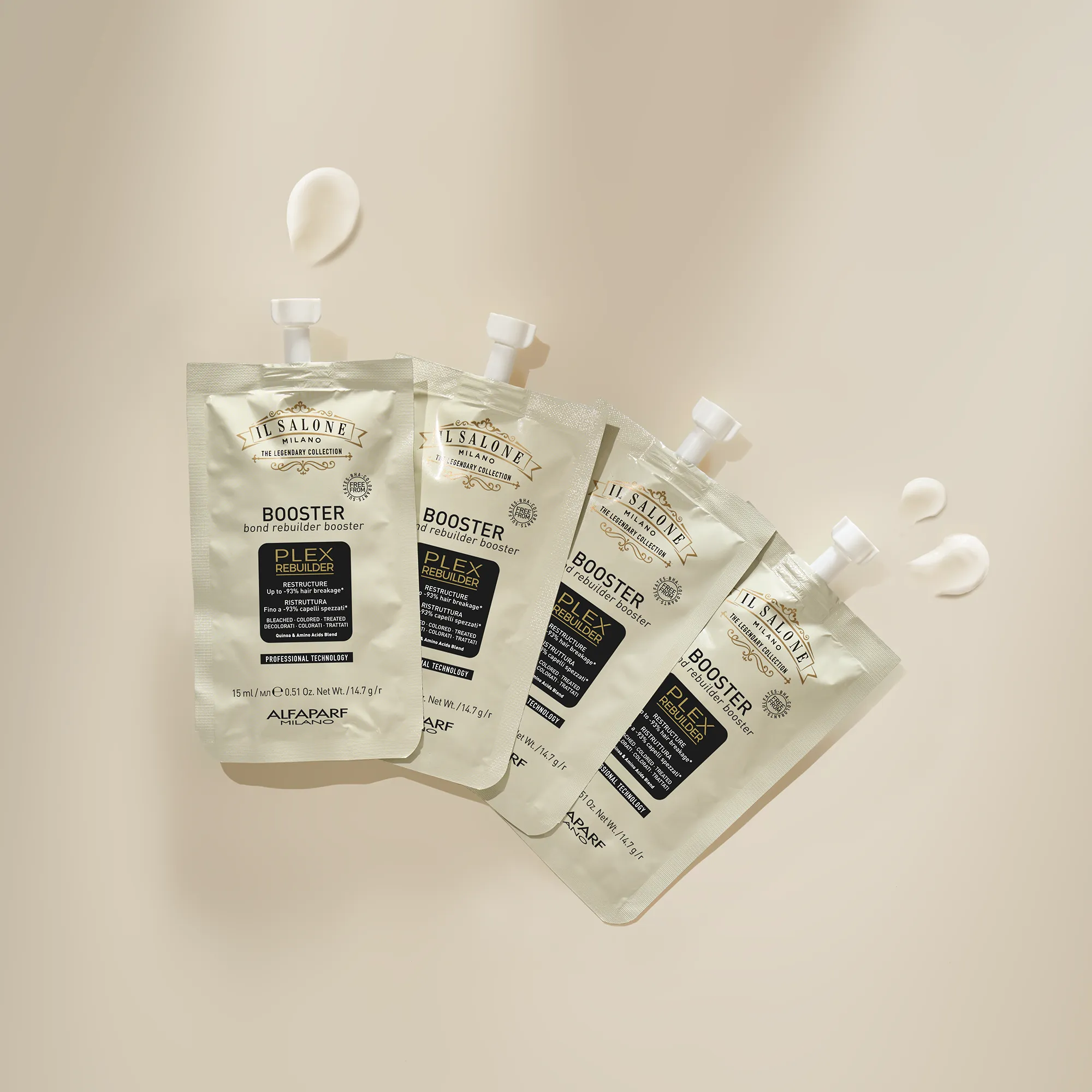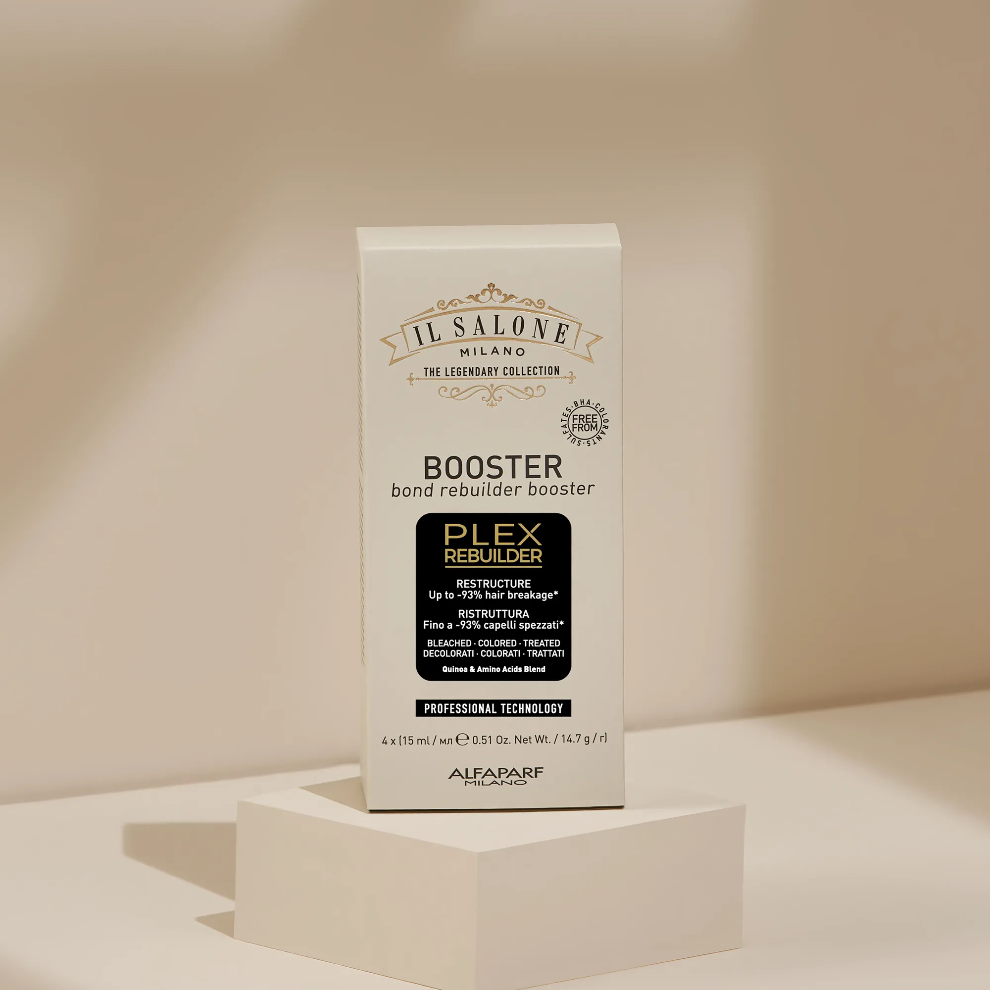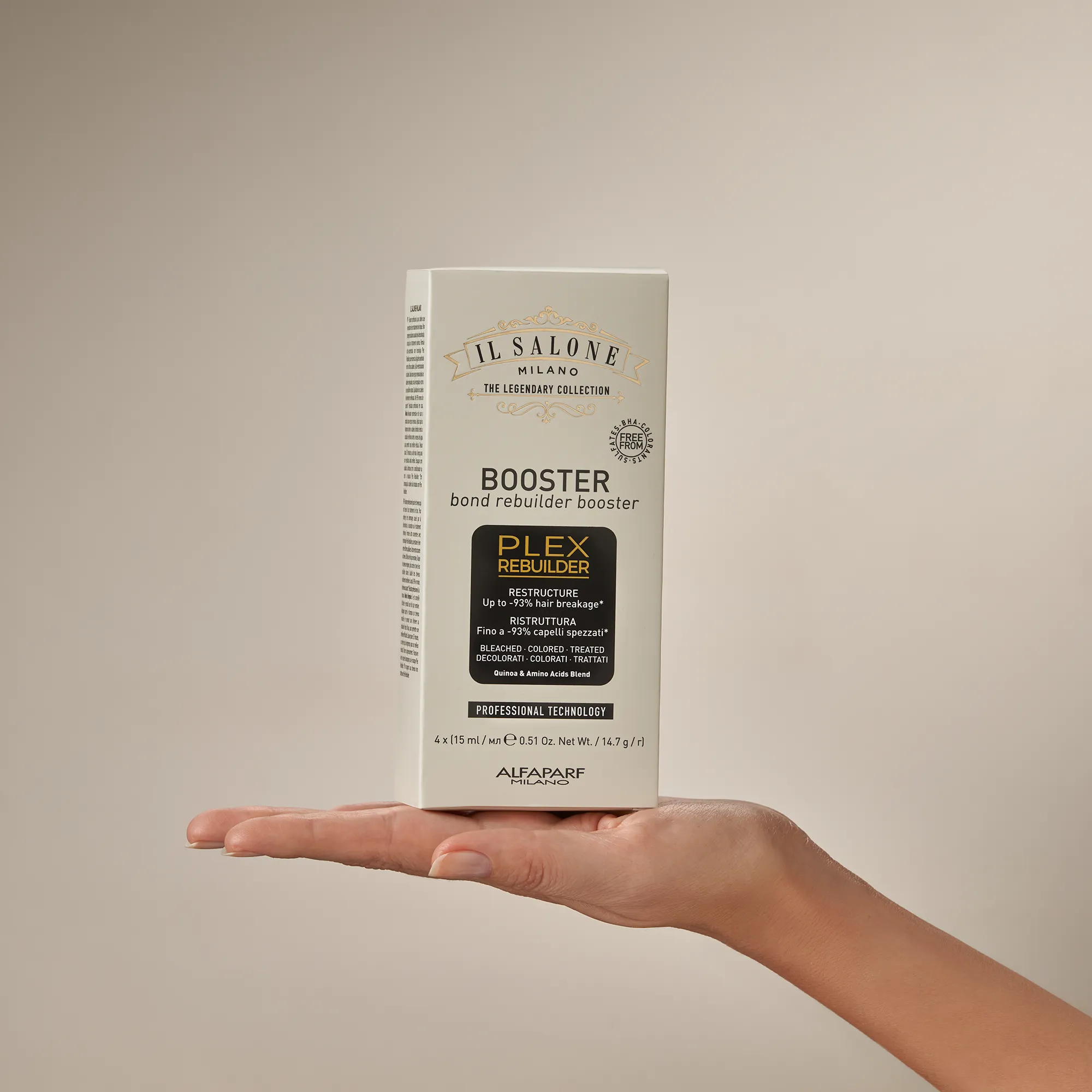 احترافي Plex Rebuilder تقنية تُعيد بناء الروابط التالفة بين ألياف الشعر، وتُصلح الشعر من الداخل. تكسر أقل بنسبة تصل إلى 93%*. تحسّن ملحوظ في حالة الشعر.