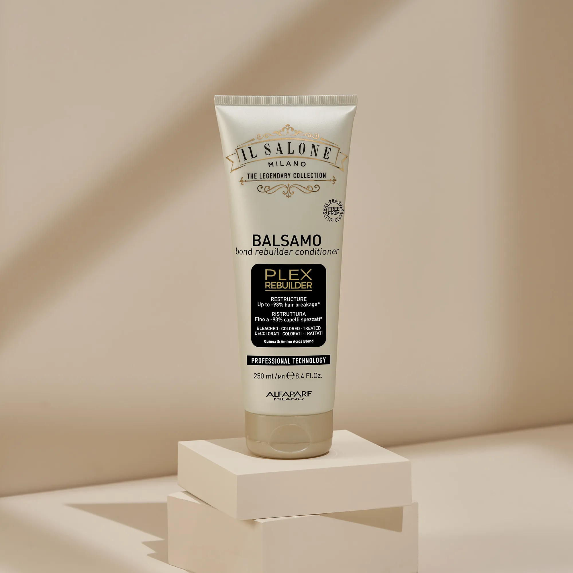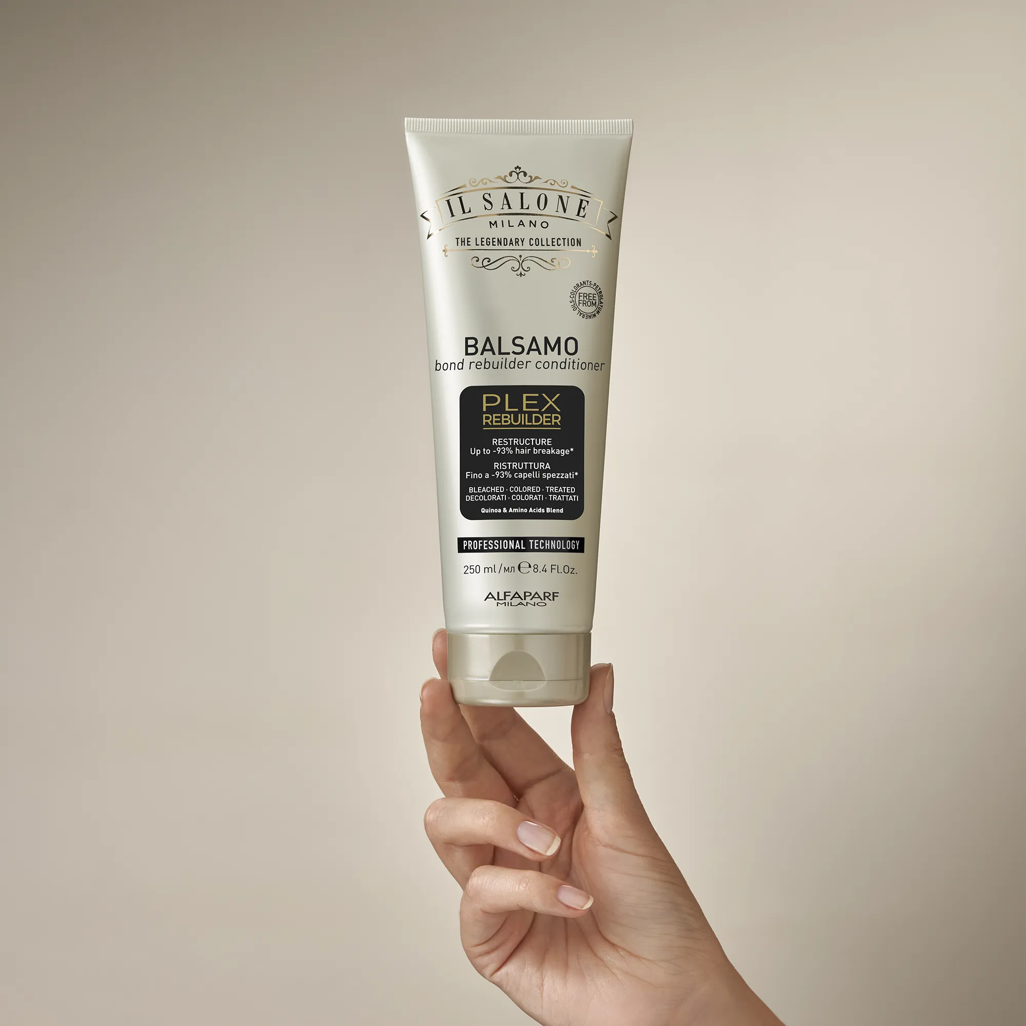 احترافي Plex Rebuilder تقنية تُعيد بناء الروابط التالفة بين ألياف الشعر، وتُصلح الشعر من الداخل. تكسر أقل بنسبة تصل إلى 93%*. تحسّن ملحوظ في حالة الشعر.