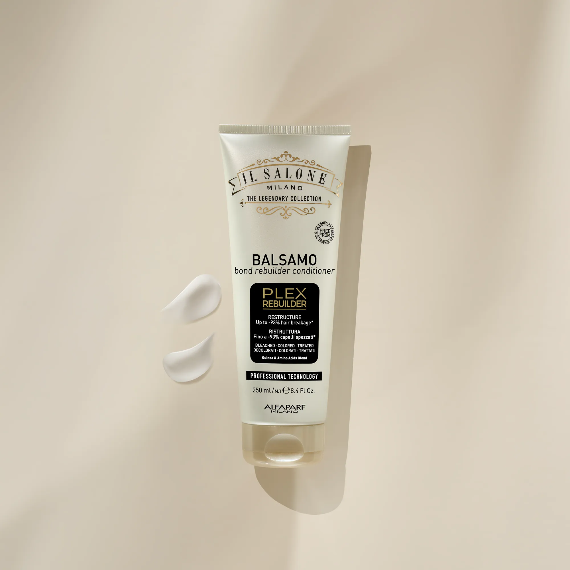 بلسم احترافي يحمي الشعر من التلف الناجم عن التبييض أو التلوين أو العلاجات الكيميائية يعيد بناء الروابط المكسورة بين ألياف الشعر، ويصلح الشعر من الداخل. يقلل من تقصف الشعر بنسبة تصل إلى 93%*. تحسين حالة الشعر بشكل واضح. شعر ناعم ومتشابك ومنتعش. نتائج احترافية في المنزل.