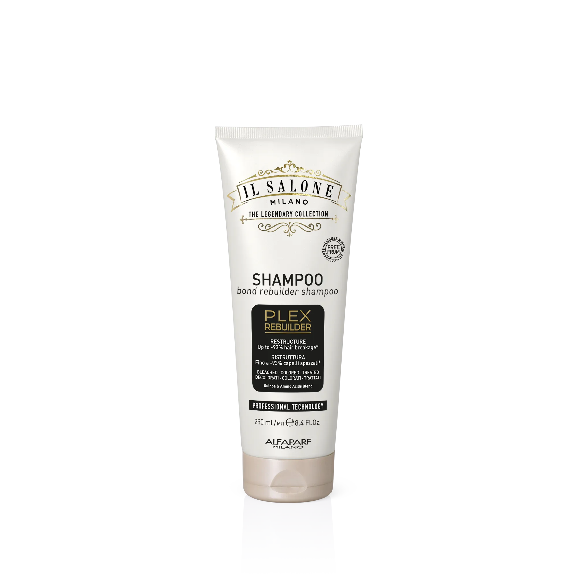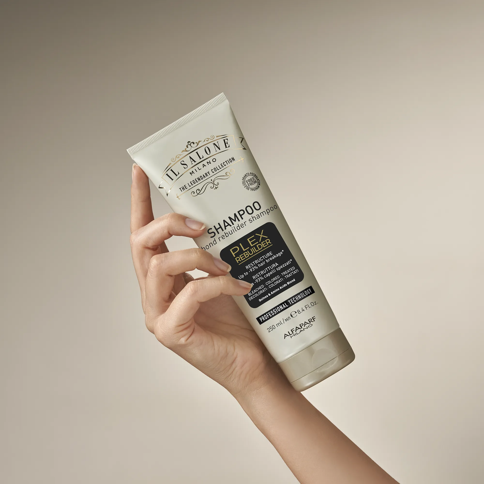 احترافي Plex Rebuilder تقنية تُعيد بناء الروابط التالفة بين ألياف الشعر، وتُصلح الشعر من الداخل. تكسر أقل بنسبة تصل إلى 93%*. تحسّن ملحوظ في حالة الشعر.