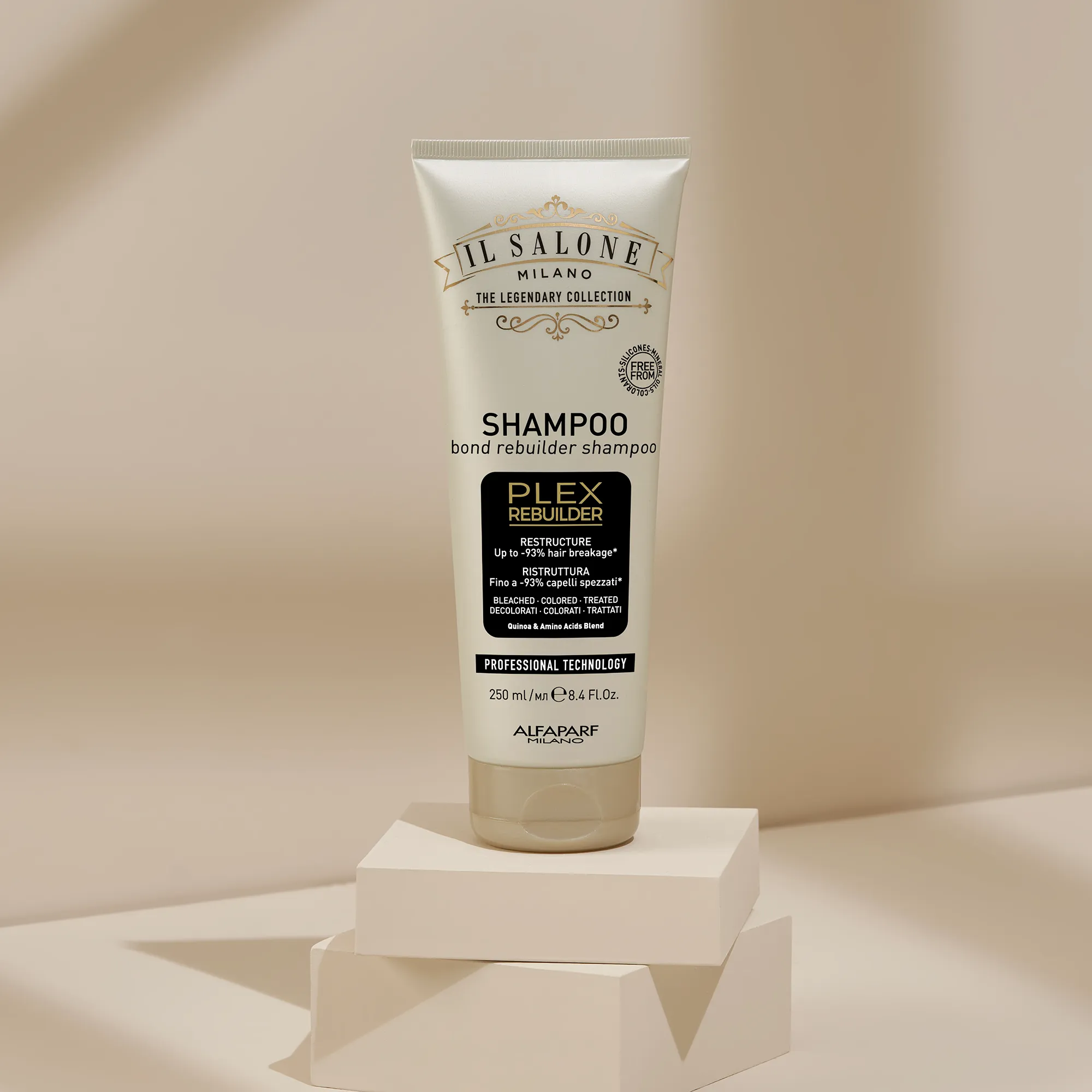 نظام صيانة منزلي احترافي يحمي الشعر من التلف الناتج عن التبييض أو الصبغ أو العلاجات الكيميائية. Plex Rebuilder تقنية تُعيد بناء الروابط التالفة بين ألياف الشعر، وتُصلح الشعر من الداخل. تكسر أقل بنسبة تصل إلى 93%*.